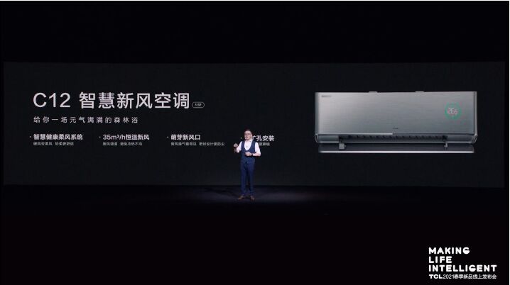 本次春季新品發(fā)布會,TCL以“智慧科技更懂你”的主題,并正式發(fā)布了旗下全套系AI家電新品——TCL靈悉C12全套系AI家電,重磅升級全場景智慧家電體系。 TCL 智慧新風空調作為TCL靈悉C12的一員,攜行業(yè)領先的新風技術重磅亮相發(fā)布會。