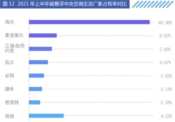 隨著近50家品牌一擁而上,中國(guó)磁懸浮中央空調(diào)市場(chǎng)規(guī)模迅速擴(kuò)大。近兩年,各廠家陸續(xù)加強(qiáng)產(chǎn)品技術(shù)創(chuàng)新,以期提高自身占有率。其中,有個(gè)品牌卻跳出同質(zhì)化競(jìng)爭(zhēng)道路,轉(zhuǎn)而發(fā)力高效機(jī)房場(chǎng)景應(yīng)用,結(jié)果份額一路高升,那就是海爾智家旗下的海爾中央空調(diào)。 8月4日,據(jù)《中央空調(diào)市場(chǎng)》數(shù)據(jù)顯示,在2021年上半年,海爾磁懸浮中央空調(diào)以60.3%份額穩(wěn)居行業(yè)首位,在工業(yè)地產(chǎn)、軌道交通、酒店行業(yè)中的占比有所提升。以用戶體驗(yàn)為核心,海爾中央空調(diào)轉(zhuǎn)型場(chǎng)景生態(tài)形成差異化競(jìng)爭(zhēng)力,為用戶帶來(lái)全流程智慧節(jié)能的最佳體驗(yàn)。