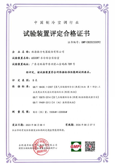 近日,格力電器6500RT水冷綜合實驗室經(jīng)合肥通用機電產(chǎn)品檢測院(GMPI)專家現(xiàn)場審核驗證,憑借高精度的測試數(shù)據(jù)、穩(wěn)定的運行以及良好的結(jié)果一致性正式獲得國家壓縮機制冷設備質(zhì)量檢驗檢測中心認可,獲頒試驗裝置評定合格證書。值得一提的是,據(jù)GMPI數(shù)據(jù)顯示,該實驗室也是目前行業(yè)內(nèi)最大的水冷綜合實驗室。