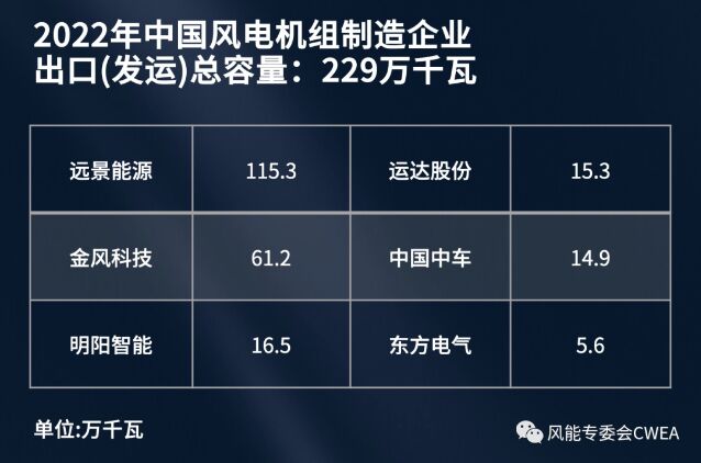 2022年,中國新增風電機組出口(發(fā)運)容量為229萬千瓦,累計出口(發(fā)運)容量達1193萬千瓦,出口設備已遍布全球5大洲共49個國家。