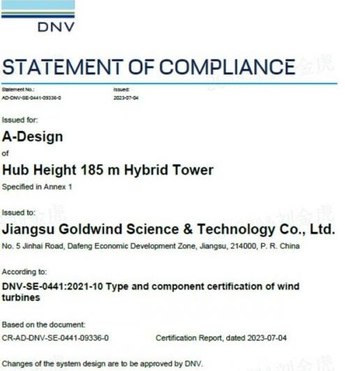 技術(shù)領(lǐng)先,權(quán)威認(rèn)可。目前,金風(fēng)科技185米鋼混塔架已經(jīng)獲得DNV A-level設(shè)計(jì)認(rèn)證證書,這也是金風(fēng)科技在鋼混塔架領(lǐng)域繼95米鋼混塔架獲UL認(rèn)證、140米鋼混塔架獲DNV認(rèn)證后獲得的第三張國際認(rèn)證證書。當(dāng)前,金風(fēng)科技鋼混塔架產(chǎn)品已累計(jì)獲得產(chǎn)品設(shè)計(jì)認(rèn)證及型式認(rèn)證30項(xiàng),全面覆蓋公司的主流機(jī)型平臺(tái)。