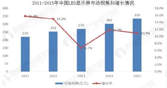 我國LED顯示屏產(chǎn)業(yè)的技術基礎和水平是相當先進的,主要產(chǎn)品和關鍵技術與國際同行業(yè)的先進水平能夠大致保持一致。LED器件技術和性能不斷提高,電子技術發(fā)展日新月異,這為LED顯示屏產(chǎn)品的技術深化和提高帶來良好的基礎。同時LED顯示在社會生活的各個領域得到了廣泛的應用,半導體照明產(chǎn)業(yè)的發(fā)展更為LED顯示產(chǎn)業(yè)帶來良好契機,因此,LED顯示市場發(fā)展前景樂觀。 LED產(chǎn)業(yè)鏈主要包括原材料、設備,上游芯片制造,中游LED封裝以及下游LED應用。而下游LED應用又主要分為LED照明,LED顯示屏以及LED背光應用等。LED應用是整個產(chǎn)業(yè)鏈中能夠帶來較高附加價值的重要一環(huán)。 目前,LED下游應用中市場規(guī)模最大的是照明領域,其次是背光應用和顯示屏。顯示屏應用規(guī)模仍維持一個相對穩(wěn)定快速增長趨勢,尤其是隨著小間距LED顯示屏技術的成熟,LED顯示屏應用將逐漸從室外超大尺寸顯示應用走向室內(nèi),應用領域?qū)@著拓寬,預計未來幾年將會保持非常高速的增長速度,從而使得LED顯示屏在整個下游應用產(chǎn)業(yè)鏈中的占比逐漸提升。 據(jù)前瞻產(chǎn)業(yè)研究院《中國LED行業(yè)市場前瞻與投資戰(zhàn)略規(guī)劃分析報告》數(shù)據(jù)顯示,2015年全國LED顯示應用行業(yè)市場銷售規(guī)模較2014年度有新的增長,全年市場總量預計將達335億元,增長幅度在10%左右。