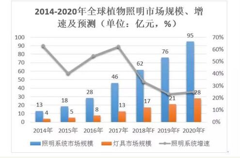 自2013年以來,全球LED植物照明市場進入快速發(fā)展時期。據(jù)LEDinside統(tǒng)計,2014年全球LED植物照明市場規(guī)模為1億美元,2016年市場規(guī)模為5.75億美元,預(yù)估2020年將增長至14.24億美元,年均復(fù)合增速超過30%。據(jù)統(tǒng)計,全球植物工廠植物燈市場規(guī)模發(fā)展迅速,預(yù)測至2020年規(guī)模高達1912萬平方米。