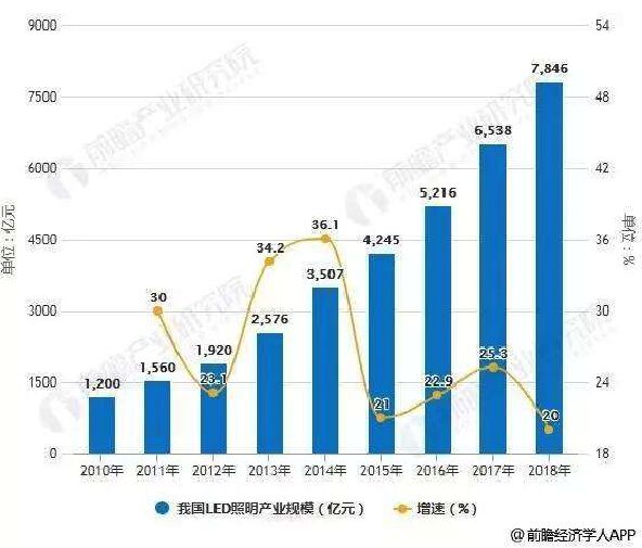 2010-2018年我國(guó)LED照明產(chǎn)業(yè)規(guī)模統(tǒng)計(jì)及增長(zhǎng)情況