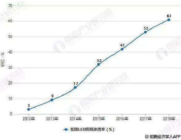 2012-2018年我國(guó)LED照明滲透率統(tǒng)計(jì)情況