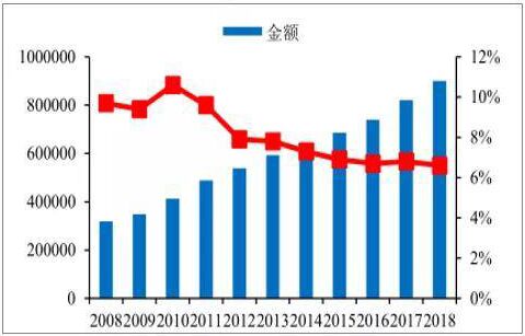 2008-2018年中國GDP趨勢(億元)(數(shù)據(jù)來源:公開資料整理)