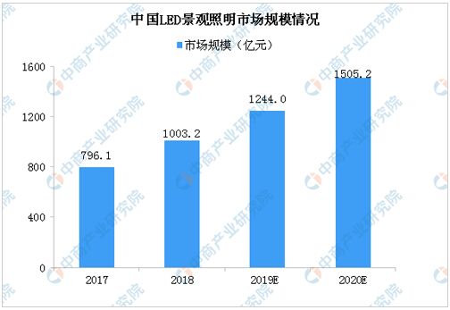 隨著我國經(jīng)濟的持續(xù)發(fā)展和人民生活水平的提高,國內(nèi)LED照明工程市場保持快速增長。根據(jù)國家半導體照明工程研發(fā)及產(chǎn)業(yè)聯(lián)盟數(shù)據(jù),2018年我國LED應用行業(yè)市場規(guī)模已達6080.00億元,而LED景觀照明在LED應用行業(yè)市場規(guī)模占比16.50%,LED景觀照明市場規(guī)模達1003.20億元,同比增長26.01%,增速高于整個LED應用市場,預計2020年LED景觀照明市場規(guī)模將突破1500億元。