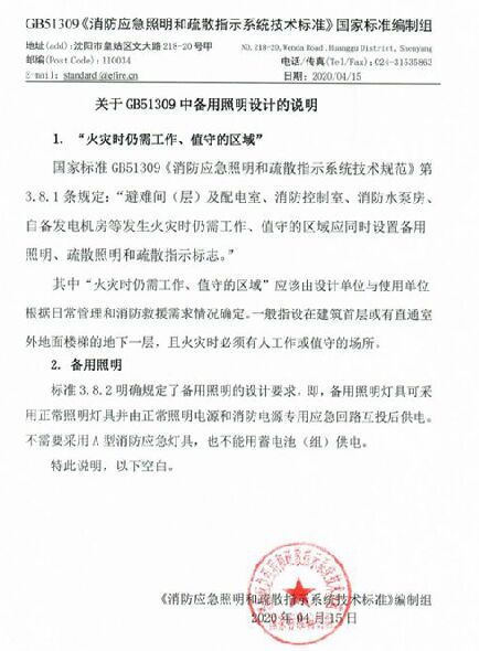 4月15日,國家標準編制組發(fā)布公告,關于GB51309中備用照明設計的說明。