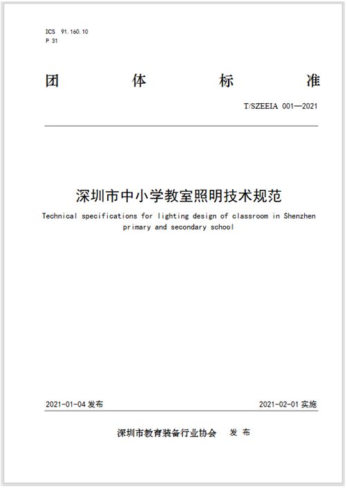 1月4日,深圳市教育裝備行業(yè)協(xié)會發(fā)布公告宣布《深圳市中小學教室照明技術(shù)規(guī)范》(T/SZEEIA 001——2021)團體標準正式發(fā)布,將于2020年2月1日起實施。