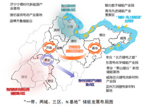 (六)培育一批特色鮮明的產(chǎn)業(yè)基地。聚焦儲(chǔ)能產(chǎn)業(yè)鏈關(guān)鍵環(huán)節(jié),立足區(qū)域優(yōu)勢(shì),加快培育一批各具特色的產(chǎn)業(yè)聚集高地。在材料生產(chǎn)環(huán)節(jié),重點(diǎn)打造棗莊“北方鋰電之都”、東營(yíng)電化學(xué)儲(chǔ)能產(chǎn)業(yè)園、泰安“泰山鋰谷”新型儲(chǔ)能基地、威海亙?cè)囯姵匦虏牧袭a(chǎn)業(yè)園和濱州萬(wàn)潤(rùn)鋰電新材料基地。在設(shè)備制造環(huán)節(jié),重點(diǎn)打造青島先進(jìn)儲(chǔ)能產(chǎn)業(yè)集聚區(qū)、濟(jì)寧寧德時(shí)代新能源產(chǎn)業(yè)基地和濰坊液流儲(chǔ)能產(chǎn)業(yè)園。在儲(chǔ)能集成環(huán)節(jié),重點(diǎn)打造山東電工電氣儲(chǔ)能產(chǎn)業(yè)基地和煙臺(tái)數(shù)字儲(chǔ)能產(chǎn)業(yè)園區(qū)。在相關(guān)服務(wù)環(huán)節(jié),重點(diǎn)打造淄博齊魯儲(chǔ)能谷。(一)加大政策支持力度。建立橫向聯(lián)動(dòng)、縱向貫通的管理機(jī)制,重點(diǎn)在產(chǎn)業(yè)布局、項(xiàng)目建設(shè)、科研攻關(guān)等方面強(qiáng)化政策協(xié)同。健全政銀企合作機(jī)制,引導(dǎo)綠色信貸、基金持續(xù)加大新型儲(chǔ)能領(lǐng)域資金投放。(二)完善電力市場(chǎng)機(jī)制。優(yōu)化容量補(bǔ)償機(jī)制,拉大峰谷電價(jià)差,引導(dǎo)新型儲(chǔ)能積極參與電力市場(chǎng)。推動(dòng)新能源場(chǎng)站和配建儲(chǔ)能聯(lián)合參與市場(chǎng)。完善虛擬電廠(chǎng)入市支持政策和交易機(jī)制。加快研究云儲(chǔ)能發(fā)展支持政策。細(xì)化輔助服務(wù)費(fèi)用補(bǔ)償機(jī)制,本著“誰(shuí)受益,誰(shuí)承擔(dān)”的原則,由發(fā)電企業(yè)、市場(chǎng)化電力用戶(hù)等所有并網(wǎng)主體共同分?jǐn)偂?/span>(三)強(qiáng)化科技創(chuàng)新驅(qū)動(dòng)。與中國(guó)科學(xué)院、中能建數(shù)科、華為等科研機(jī)構(gòu)、重點(diǎn)院校和頭部企業(yè)加強(qiáng)戰(zhàn)略合作,建設(shè)一批重大科技創(chuàng)新平臺(tái)。依托山東大學(xué)、山東科技大學(xué)、山東能源研究院、國(guó)網(wǎng)山東電科院等高校、科研機(jī)構(gòu),建立涵蓋新型儲(chǔ)能設(shè)備試驗(yàn)、檢測(cè)監(jiān)測(cè)、安全應(yīng)急等專(zhuān)業(yè)領(lǐng)域,各環(huán)節(jié)相互支撐、協(xié)同發(fā)展的技術(shù)支撐體系。大力推動(dòng)政產(chǎn)學(xué)研用協(xié)同創(chuàng)新。(四)制訂地方標(biāo)準(zhǔn)規(guī)范。完善新型儲(chǔ)能產(chǎn)業(yè)標(biāo)準(zhǔn)體系,研究編制涉及新型儲(chǔ)能規(guī)劃設(shè)計(jì)、設(shè)備試驗(yàn)、施工驗(yàn)收、運(yùn)行維護(hù)、檢測(cè)檢修等環(huán)節(jié)的地方標(biāo)準(zhǔn)。開(kāi)展規(guī);瘍(chǔ)能集群智慧調(diào)控、分布式儲(chǔ)能聚合調(diào)控及電化學(xué)儲(chǔ)能電站技術(shù)監(jiān)督相關(guān)標(biāo)準(zhǔn)研究,制定儲(chǔ)能系統(tǒng)綜合評(píng)價(jià)指標(biāo),保障我省儲(chǔ)能健康有序發(fā)展。(五)壓實(shí)各方主體責(zé)任。會(huì)同相關(guān)部門(mén)按照安全生產(chǎn)“三管三必須”原則,建立健全新型儲(chǔ)能安全管理機(jī)制。壓緊壓實(shí)項(xiàng)目建設(shè)單位安全主體責(zé)任,推動(dòng)項(xiàng)目有序?qū)嵤、?guī)范運(yùn)行。(六)加強(qiáng)相關(guān)項(xiàng)目管理。建立項(xiàng)目常態(tài)化管理工作機(jī)制,依托新能源云平臺(tái)建設(shè)省級(jí)新型儲(chǔ)能項(xiàng)目庫(kù),按年度動(dòng)態(tài)調(diào)整,示范項(xiàng)目原則上從入庫(kù)項(xiàng)目中遴選。規(guī)范新型儲(chǔ)能設(shè)計(jì)要求,嚴(yán)格質(zhì)量監(jiān)督,完善接網(wǎng)程序,強(qiáng)化技術(shù)監(jiān)督,細(xì)化應(yīng)急預(yù)案,確保新型儲(chǔ)能項(xiàng)目建設(shè)規(guī)范、安全運(yùn)行。附件:“一帶、兩城、三區(qū)、N基地”儲(chǔ)能發(fā)展布局圖