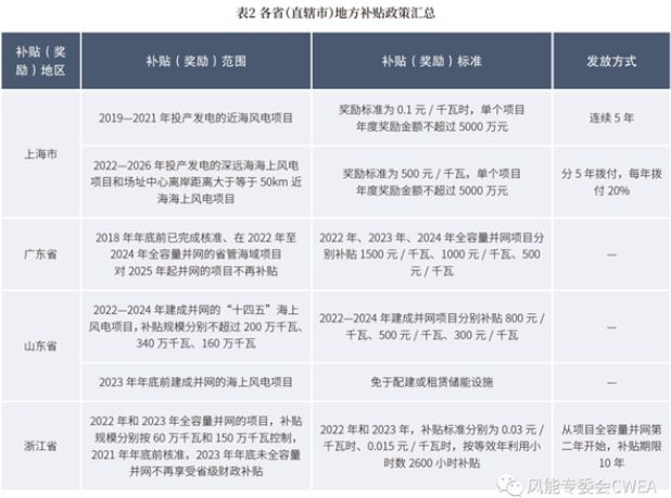 2020年1月20日,財(cái)政部、國家發(fā)展改革委、國家能源局印發(fā)《關(guān)于促進(jìn)非水可再生能源發(fā)電健康發(fā)展的若干意見》進(jìn)一步明確,新增海上風(fēng)電和光熱項(xiàng)目不再納入中央財(cái)政補(bǔ)貼范圍,按規(guī)定完成核準(zhǔn)(備案)并于2021年12月31日前全部機(jī)組完成并網(wǎng)的存量海上風(fēng)力發(fā)電和太陽能光熱發(fā)電項(xiàng)目,按相應(yīng)價(jià)格政策納入中央財(cái)政補(bǔ)貼范圍。這意味著,自2022年起,我國海上風(fēng)電項(xiàng)目不再納入中央財(cái)政補(bǔ)貼范疇,海上風(fēng)電開發(fā)進(jìn)入地方補(bǔ)貼接力時(shí)期。