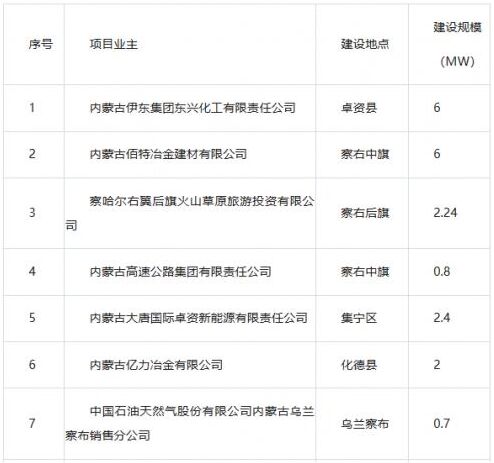 根據(jù)《內(nèi)蒙古自治區(qū)分散式風(fēng)電、分布式光伏發(fā)電項(xiàng)目三年行動計(jì)劃(2021-2023年)》(內(nèi)能新能字〔2021〕338號)文件精神,我委委托專業(yè)機(jī)構(gòu)對2023年分布式光伏發(fā)電項(xiàng)目進(jìn)行了優(yōu)選,經(jīng)委黨組研究決定,現(xiàn)將優(yōu)選結(jié)果予以公示。如有異議請?jiān)诠酒趦?nèi)以書面形式提出意見,并反饋烏蘭察布市發(fā)改委。