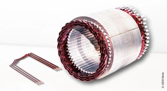 格勞博的點擊定子(右)包含多個由發(fā)卡式繞組組成的繞組輪轂(左)