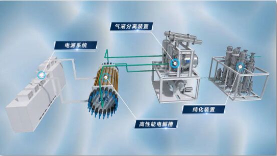 此次交付的綠電智能制氫系統(tǒng)發(fā)揮了最具規(guī);瘧(yīng)用前景的“節(jié)能高效、無人值守”設(shè)計理念,通過向電解槽中接入直流電,讓水分子在電極上產(chǎn)生電化學(xué)反應(yīng),分解成氫氣和氧氣,再利用氣液分離器對氫氣進(jìn)行堿液分離,最后利用純化裝置提純獲得高品質(zhì)氫氣,可廣泛應(yīng)用于石化、煤化工、鋼鐵、合成氨、交通等領(lǐng)域。從今年3月項目中標(biāo),到10月在雙良測試中心進(jìn)行各項指標(biāo)測試(相關(guān)指標(biāo)均達(dá)到甚至超過設(shè)計值),雙良新能源制氫團(tuán)隊以精益求精的態(tài)度,不斷優(yōu)化方案、細(xì)節(jié),并且克服了疫情對生產(chǎn)進(jìn)度帶來的影響,最終保質(zhì)保量完成了交付。