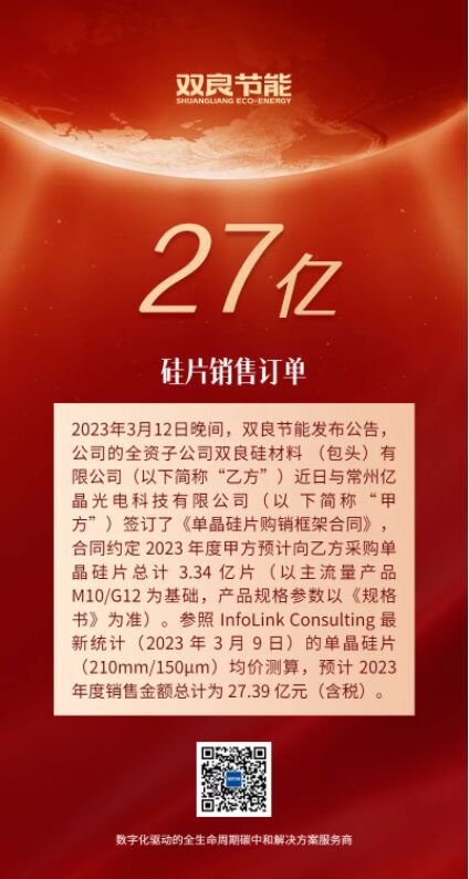 雙良大尺寸單晶硅片戰(zhàn)略推進順利,本合同的簽訂標志著公司的大尺寸單晶硅片產(chǎn)品獲得更多下游優(yōu)質客戶及市場的認可,對公司單晶硅片業(yè)務形成長期穩(wěn)定的銷售有著積極影響,有利于提高公司本年度單晶硅片業(yè)務的銷售收入和經(jīng)營現(xiàn)金流。(本次公告的訂單金額僅為估算金額)