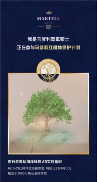 紅樹(shù)林被譽(yù)為大自然的“天然氧吧”,馬爹利攜手“保護(hù)國(guó)際基金會(huì)”化身“藍(lán)氧騎士”守護(hù)紅樹(shù)林,為將保護(hù)自然生態(tài)環(huán)境的理念帶到每個(gè)人身邊。在2023年3月期間,馬爹利“藍(lán)氧騎士”小程序同步上線,通過(guò)豐富有趣的內(nèi)容科普提升用戶對(duì)紅樹(shù)林生態(tài)系統(tǒng)的了解,并以虛擬種植的現(xiàn)實(shí)增強(qiáng)技術(shù),令每個(gè)用戶都可沉浸式地參與到紅樹(shù)林的“守護(hù)”中來(lái)。