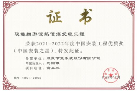 近日,中國(guó)安裝協(xié)會(huì)第七屆四次理事(擴(kuò)大)會(huì)議暨第七屆四次常務(wù)理事會(huì)在南京召開。會(huì)議表彰了2021-2022年度中國(guó)安裝工程優(yōu)質(zhì)獎(jiǎng)(中國(guó)安裝之星)獲獎(jiǎng)單位及突出貢獻(xiàn)者。陜能麟游低熱值煤發(fā)電工程成功獲獎(jiǎng),該工程“煙塔合一”間接空冷系統(tǒng)由雙良節(jié)能EPC總承包建設(shè)。