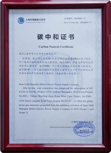 6月5日,在上海市電力公司、國網(wǎng)英大碳資產(chǎn)公司等多方見證下,國網(wǎng)上海市北供電公司正式被上海環(huán)境能源交易所授予“2022年度碳中和證書”,標志著市北公司成為國網(wǎng)系統(tǒng)內首個實現(xiàn)自循環(huán)運營碳中和實踐、碳遠期交易實踐和“碳管理+碳金融+碳中和”融合應用實踐的地市級供電公司,為國網(wǎng)上海電力碳達峰方案的落地落實提供有力支持,彰顯了雙碳戰(zhàn)略下“一體四翼”的生動實踐。
