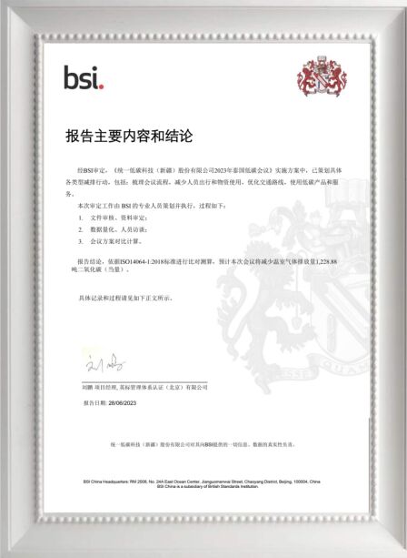 據(jù)介紹,為了保證低碳措施的有效性和科學(xué)性,統(tǒng)一委托BSI(英國標(biāo)準(zhǔn)協(xié)會(huì))對會(huì)議實(shí)施方案進(jìn)行了碳足跡認(rèn)證。BSI是全球領(lǐng)先的標(biāo)準(zhǔn)制定、認(rèn)證和培訓(xùn)機(jī)構(gòu),擁有豐富的碳管理經(jīng)驗(yàn)和專業(yè)技術(shù)。經(jīng)BSI驗(yàn)證,依據(jù)ISO14064-1:2018標(biāo)準(zhǔn)進(jìn)行比對測算,認(rèn)定統(tǒng)一低碳大會(huì)實(shí)施方案將減少溫室氣體排放量1,228.88噸二氧化碳(當(dāng)量)。