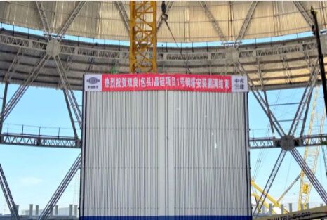 8月22日,在內(nèi)蒙古包頭的雙良新能源光伏產(chǎn)業(yè)園三期50GW單晶硅項(xiàng)目(簡(jiǎn)稱“三期項(xiàng)目”)建設(shè)現(xiàn)場(chǎng),隨著頂部最后一塊蒙皮吊裝完成鋼塔合攏,三期項(xiàng)目1號(hào)、2號(hào)全鋼結(jié)構(gòu)間冷塔順利封頂,為三期項(xiàng)目早日投產(chǎn)奠定了堅(jiān)實(shí)的基礎(chǔ)。