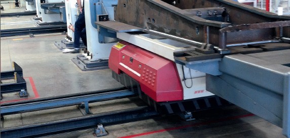 RGV 小車在三一臨港生產(chǎn)基地的結(jié)構(gòu)件焊接車間中用于全自動生產(chǎn)挖掘機挖斗和動臂