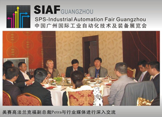 11月5日,SIAF GUANGZHOU 的主承辦單位--中國對外貿(mào)易廣州展覽公司、廣州富洋展覽有限公司、廣州光亞法蘭克福展覽有限公司以及德國美賽高法蘭克福展覽有限公司在上海召開了媒體見面會,邀請了國內(nèi)外的自動化行業(yè)媒體出席。美賽高法蘭克福展覽公司副總裁Petra Haarburger女士在會上做了發(fā)言,“SIAF2010中國廣州國際工業(yè)自動化技術(shù)及裝備展覽會”在自動化領(lǐng)域內(nèi)已經(jīng)引起了巨大反響,眾多國際知名品牌紛紛積極報名參與此次盛會,主辦各方都對SIAF2010的前景充滿了信心和期待。 SIAF GUANGZHOU,即中國廣州國際工業(yè)自動化技術(shù)及裝備展覽會,是全球最大自動化展---“SPS/IPC/DRIVES電氣自動化展”與華南著名工控展---“CHIFA中國(廣州)國際工業(yè)控制自動化及儀器儀表展”在中國的完美結(jié)合。經(jīng)過資源整合,展會將借鑒SPS成功辦展經(jīng)驗(yàn)和營銷模式投入運(yùn)行。