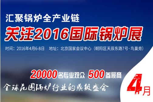IBE即國際鍋爐展(International Boiler Exhibition)已定于2016年在中國北京舉辦全球范圍鍋爐行業(yè)的鼎級盛會,具體對觀眾開放時間為2016年4月6日、7日、8日的早上9點到下午5點,地點為北京國家會議中心(鳥巢旁)。
