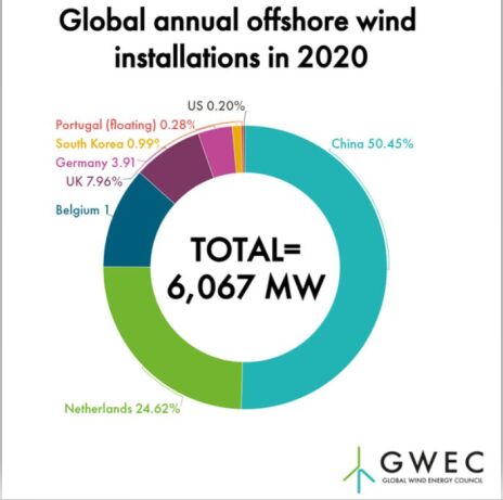 圖1 2020年全球海上風(fēng)電裝機情況