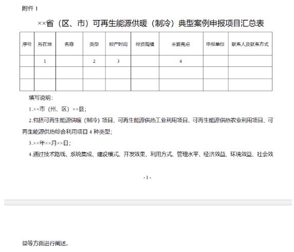 四、各。▍^(qū)、市)能源主管部門會同生態(tài)環(huán)境、住房城鄉(xiāng)建設(shè)部門于2024年1月31日前,將申報(bào)材料(一式三份)寄送至國家能源局新能源司,并同步將電子版發(fā)送至郵箱(xinny@nea.gov.cn),申報(bào)材料名稱為“××。▍^(qū)、市)可再生能源供暖(制冷)典型案例申報(bào)材料”。