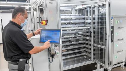 EtherCAT 可以確保車間的實時通信速率,實現高性能生產。此外,TwinSAFE 將安全功能集成到控制系統(tǒng)中!坝捎谟泻芏嗉庸ち鞒掏瑫r進行,我們不希望在按下某臺設備的急停按鈕時,每臺設備都會停止運轉。TwinSAFE 讓我們能夠停止特定的銑床和安全區(qū)域,而且我們還可以在同一個項目中創(chuàng)建這種邏輯。”Kunal Patil 說道。