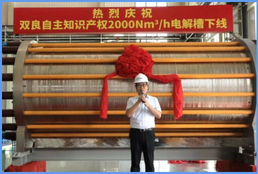 9月8日,在雙良綠電智能制氫裝備車間,自主知識產(chǎn)權(quán)2000Nm³/h電解槽成功下線,刷新了此前同產(chǎn)品的最大制氫量記錄,彰顯了雙良在大型電解槽系統(tǒng)設計與制造方面的實力,標志著雙良氫能產(chǎn)業(yè)向前再邁進堅實一步。