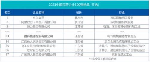 日前,全球極具創(chuàng)新力的光伏企業(yè)晶科能源宣布,公司榮登“2023年中國民營企業(yè)500強”榜單,自此締造了連續(xù)十年榜上有名的行業(yè)佳話。此次再度登榜,公司位次再度大幅晉升,較2022年度提升57位,位居第83位,品牌實力、盈利能力均獲得充分彰顯。
