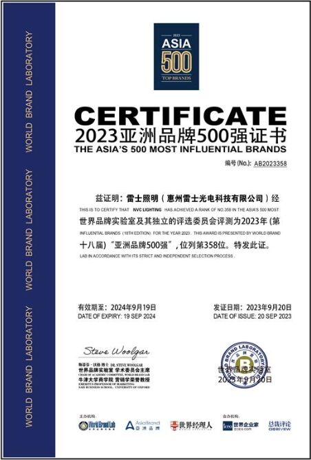 近日,由世界品牌實驗室(World Brand Lab)主辦的“亞洲品牌大會”正式發(fā)布2023年《亞洲品牌500強》排行榜,雷士照明與華為、海爾、騰訊等各行業(yè)頭部品牌一同上榜,位列榜單第358位,再次彰顯雷士照明在行業(yè)里無可比攀的品牌價值和雄厚的品牌實力。