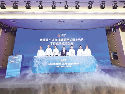 山東樁基固定式海上光伏實(shí)證項(xiàng)目成果發(fā)布現(xiàn)場(chǎng)。