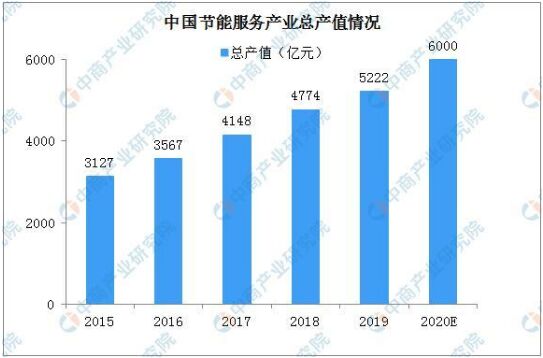 節(jié)能服務(wù)產(chǎn)業(yè)行業(yè)現(xiàn)狀 1、產(chǎn)業(yè)配套齊全 節(jié)能服務(wù)產(chǎn)業(yè)鏈涉及眾多的行業(yè),包括節(jié)能材料、節(jié)能設(shè)備以及先進(jìn)的能源管理軟件系統(tǒng)。我國的節(jié)能服務(wù)產(chǎn)業(yè)已經(jīng)形成了較為龐大的規(guī)模,產(chǎn)業(yè)鏈日趨完善,產(chǎn)品配套能力較強(qiáng),可以針對地域特征、節(jié)能需求和投資預(yù)算提供差異化的節(jié)能產(chǎn)品和服務(wù)。目前,我國的節(jié)能材料、節(jié)能設(shè)備以及能源管理軟件系統(tǒng)已實(shí)現(xiàn)自給自足,具有相對低廉的采購成本,與下游客戶和產(chǎn)品市場貼合比較密切,市場反應(yīng)時間快,完整的產(chǎn)業(yè)鏈為我國節(jié)能服務(wù)產(chǎn)業(yè)的迅速發(fā)展提供了基本保障。 2、產(chǎn)業(yè)規(guī)?焖僭鲩L 近年來,節(jié)能服務(wù)產(chǎn)業(yè)總產(chǎn)值不斷增長,呈逐年上漲趨勢。中國節(jié)能協(xié)會數(shù)據(jù)顯示,2019年我國節(jié)能服務(wù)產(chǎn)業(yè)總產(chǎn)值達(dá)5222億元,同比增長9.38%。根據(jù)《“十三五”節(jié)能環(huán)保產(chǎn)業(yè)發(fā)展規(guī)劃》,到2020年節(jié)能服務(wù)業(yè)總產(chǎn)值達(dá)到6000億元。我國節(jié)能服務(wù)行業(yè)潛力巨大。