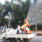 3WD2000-120型煤礦除塵設(shè)備/工業(yè)除塵噴霧機(jī)/抑塵噴灑設(shè)備/射霧器/遠(yuǎn)射程風(fēng)送式噴霧機(jī) 產(chǎn)品特點(diǎn) ●采用國(guó)產(chǎn)優(yōu)質(zhì)柴油發(fā)電機(jī)組,性能穩(wěn)定、安全可靠; ●功力強(qiáng)、射程高(遠(yuǎn))、穿透性好; ●采用自動(dòng)控制,遙控操作(可在駕駛室內(nèi)操作),操作簡(jiǎn)單、安全方便; ●工作效率高、防治成本少,藥劑利用率高、污染。 ●噴霧機(jī)組與發(fā)電機(jī)組分體設(shè)計(jì),配套動(dòng)力靈活,既可用三相380V的市電, 也可配套發(fā)電機(jī)組供電; 適用范圍: ●環(huán)保行業(yè)、礦山、煤炭堆場(chǎng)、碼頭、煉鋼廠及其它粉塵比較大的施工場(chǎng)地等除塵及降溫; ●垃圾堆場(chǎng)、公共場(chǎng)所、以及自然災(zāi)害過后的大面積殺菌消毒、防疫。 技術(shù)參數(shù): 1、配套動(dòng)力:300KW四缸柴油發(fā)電機(jī)組 2、藥泵:流量160~240L/min 工作壓力2.5~3.5MPa 3、射程:120m 4、霧普范圍:100~300um 5、俯仰角:-10°~45° 6、風(fēng)筒水平旋轉(zhuǎn)角:320° 7、藥箱:根據(jù)客戶要求選配
